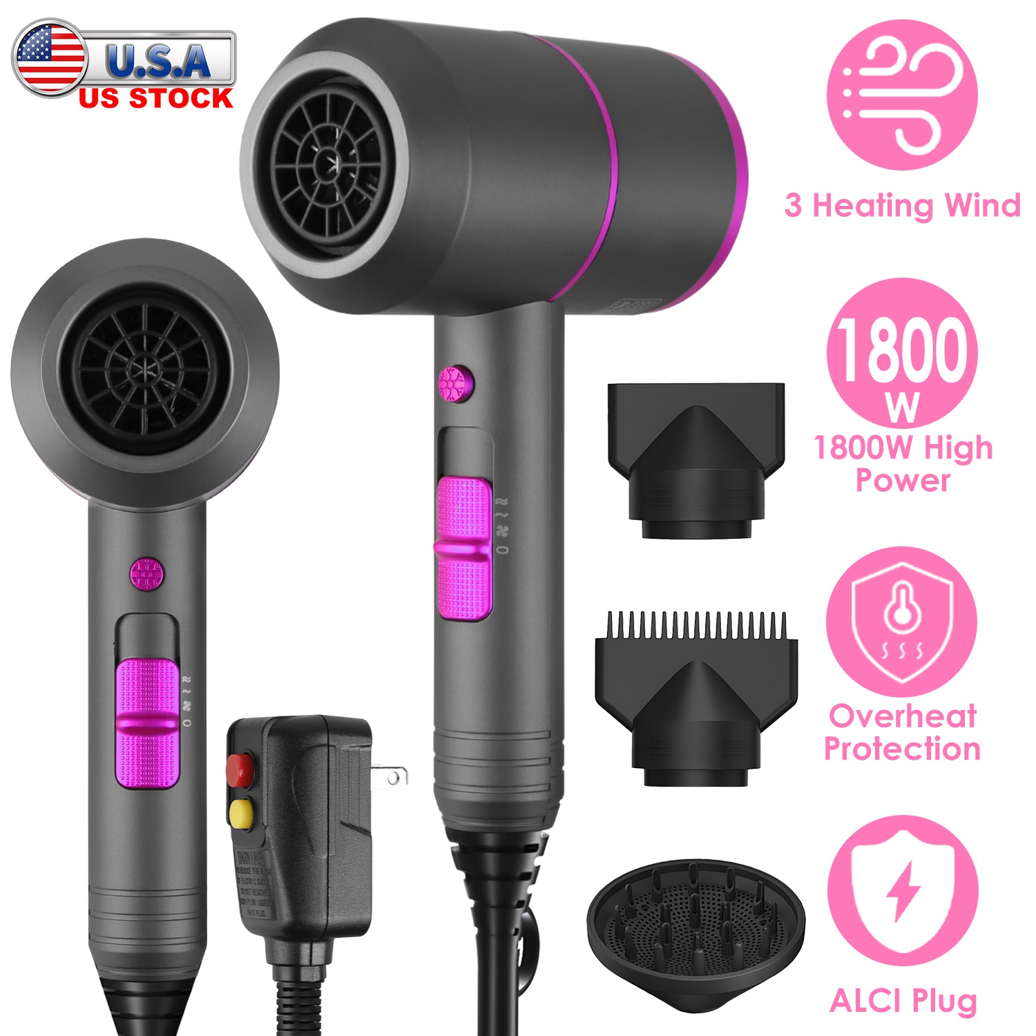 1800W Hair Dryer Portable Compact Hair Blow Dryer with Cool/Warm/Hot Wind with Diffuser Concentrator/Comb Nozzle ALCI Plug Overheat Protection for Wom 1800W Hair Dryer Portable Compact Hair Blow Dryer with Cool/Warm/Hot Wind with Diffuser Concentrator/Comb Nozzle ALCI Plug Overheat Protection for Wom 1800W Hair Dryer Portable Compact Hair Blow Dryer with Cool/Warm/Hot Wind with Diffuser Concentrator/Comb Nozzle ALCI Plug Overheat Protection for Wom 1800W Hair Dryer Portable Compact Hair Blow Dryer with Cool/Warm/Hot Wind with Diffuser Concentrator/Comb Nozzle ALCI Plug Overheat Protection for Wom 1800W Hair Dryer Portable Compact Hair Blow Dryer with Cool/Warm/Hot Wind with Diffuser Concentrator/Comb Nozzle ALCI Plug Overheat Protection for Wom 1800W Hair Dryer Portable Compact Hair Blow Dryer with Cool/Warm/Hot Wind with Diffuser Concentrator/Comb Nozzle ALCI Plug Overheat Protection for Wom