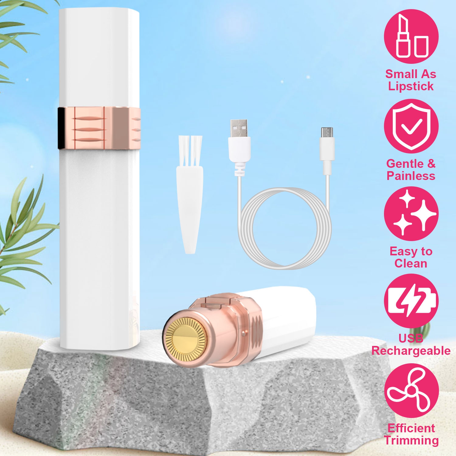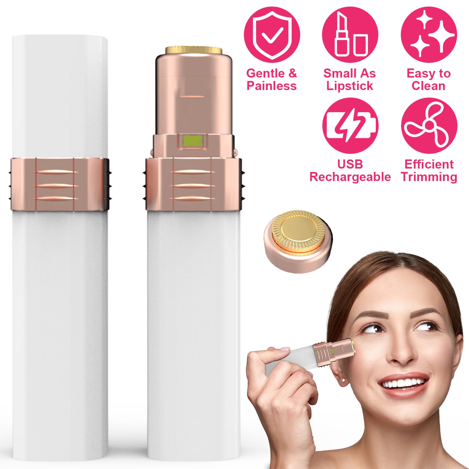Home > Flawless Facial Hair Remover Painless Facial Hair Epilator USB Rechargeable Women\'s Face Shaver with LED Light for Lip Chin Arms
