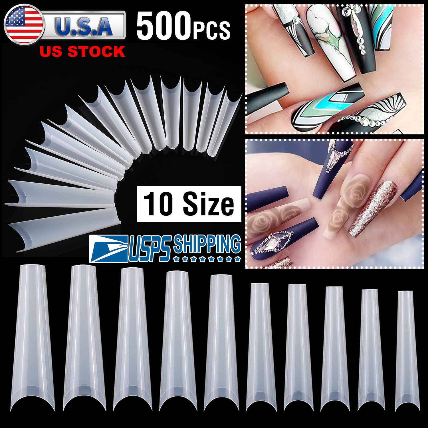 500Pcs False Nail Tips C Curve Half Cover French Nails Extra Long Fake Finger Nails For Nail Art Salons Home DIY 10 Sizes