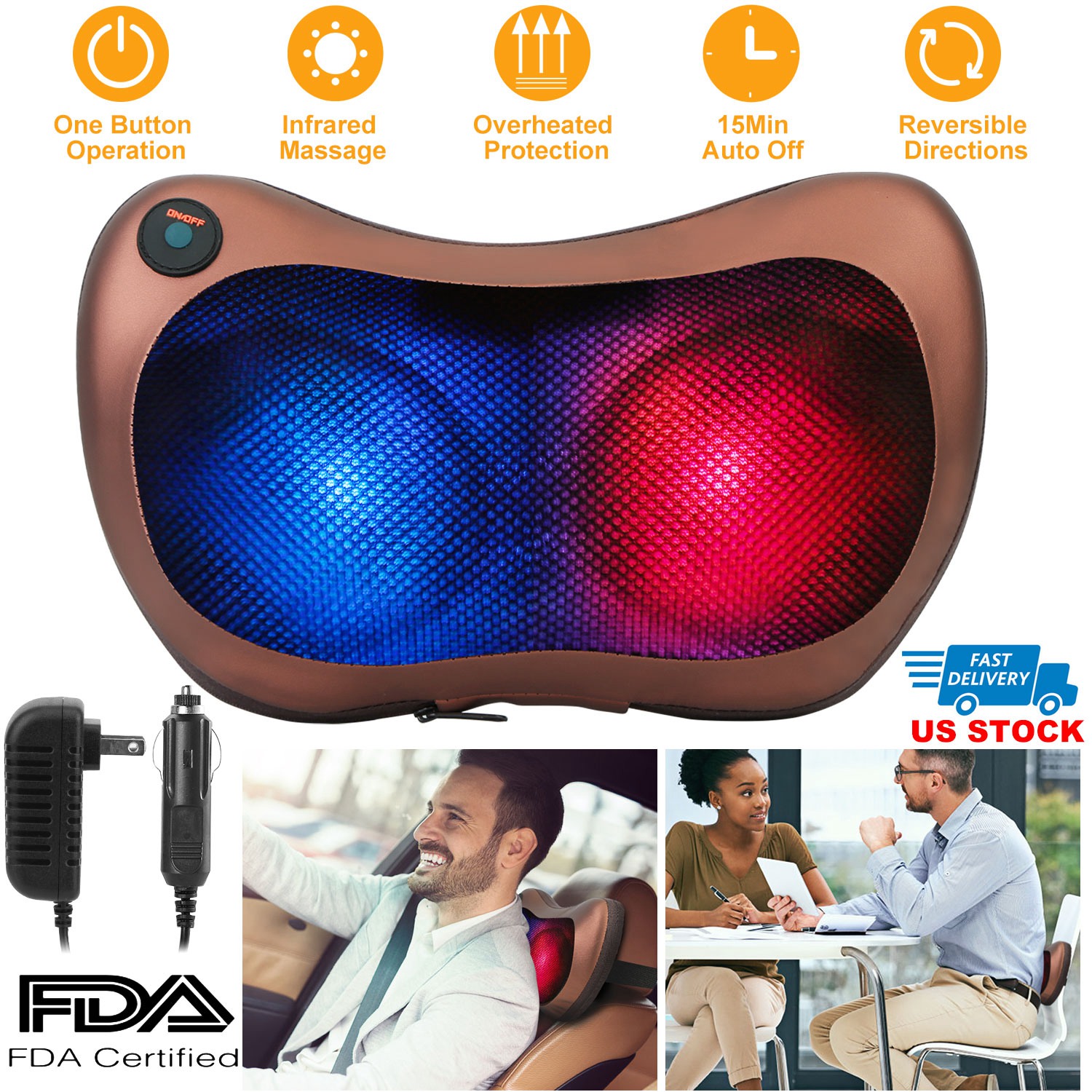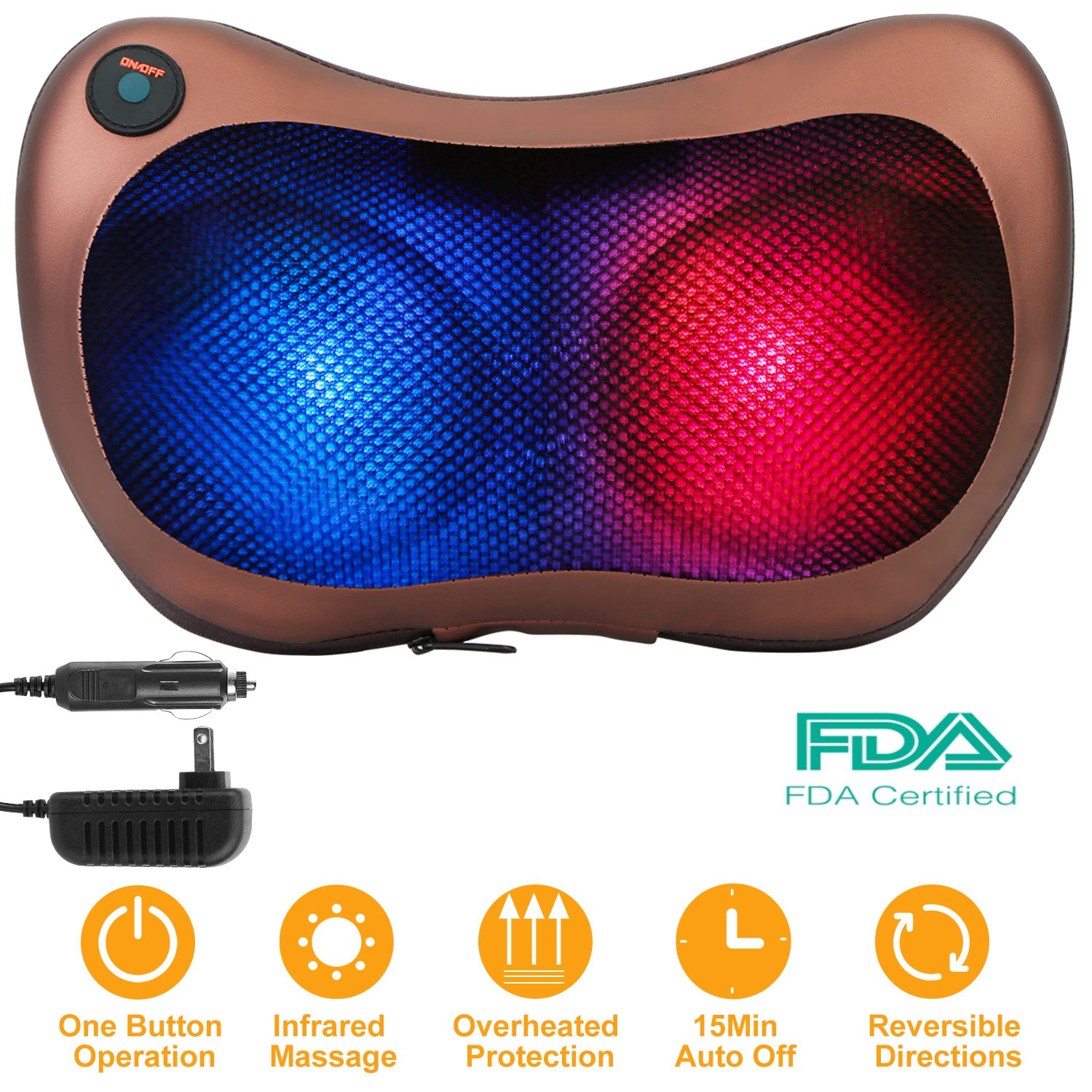 3 Working Modes: Mode 1, Press Once(Infrared Kneading with Auto Reverse Direction); Mode 2, Press Twice(Infrared Manipulation with Auto Reverse Direction);Mode 3, Press Third Times(Kneading + Manipulation without Infrared Light)