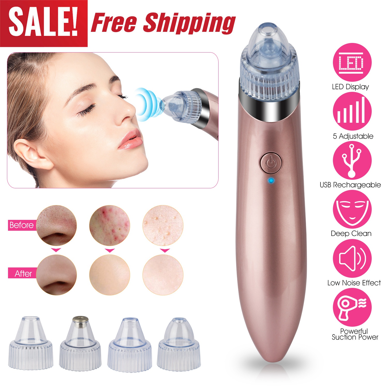 Home > Electric Blackhead Remover Vacuum Suction Facial Pore Cleaner Acne Pimple Extractor Skin Care Cleaning Tool with 4 Suction Head