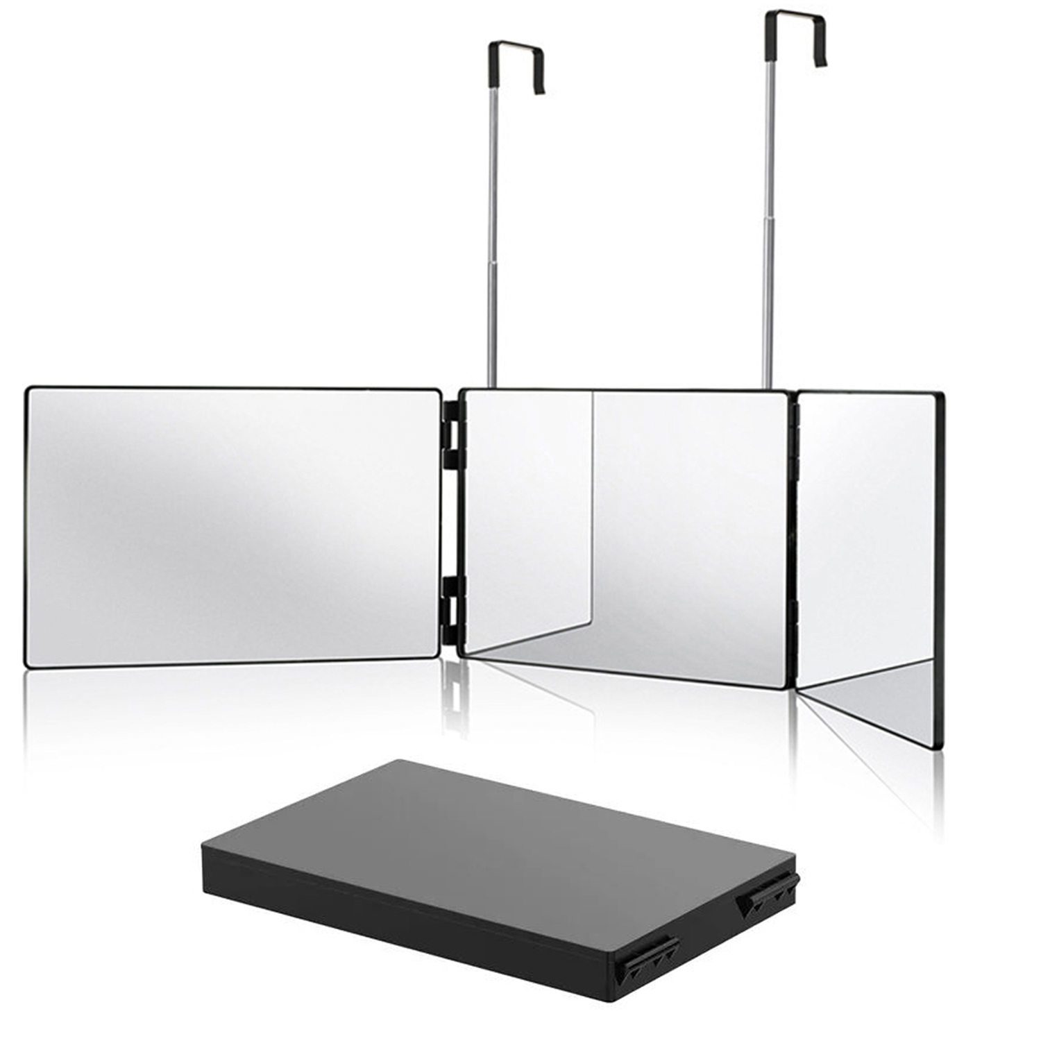 Home > 3 Way Mirror with Telescopic Hanger Tri-fold Mirror Personal Makeup Mirror for Self Shaving Hair Cutting Dyeing Curling Braiding