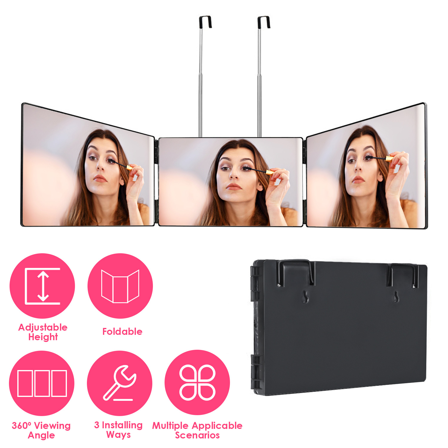 3 Way Mirror with Telescopic Hanger Tri-fold Mirror Personal Makeup Mirror for Self Shaving Hair Cutting Dyeing Curling Braiding